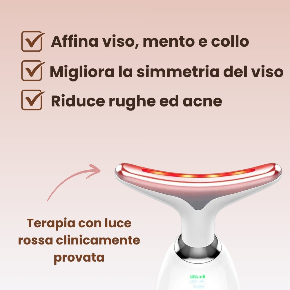 Trasforma la tua skincare con RadiantSkin, il dispositivo innovativo che combina 7 luci LED, EMS ed effetto calore a 45°C.